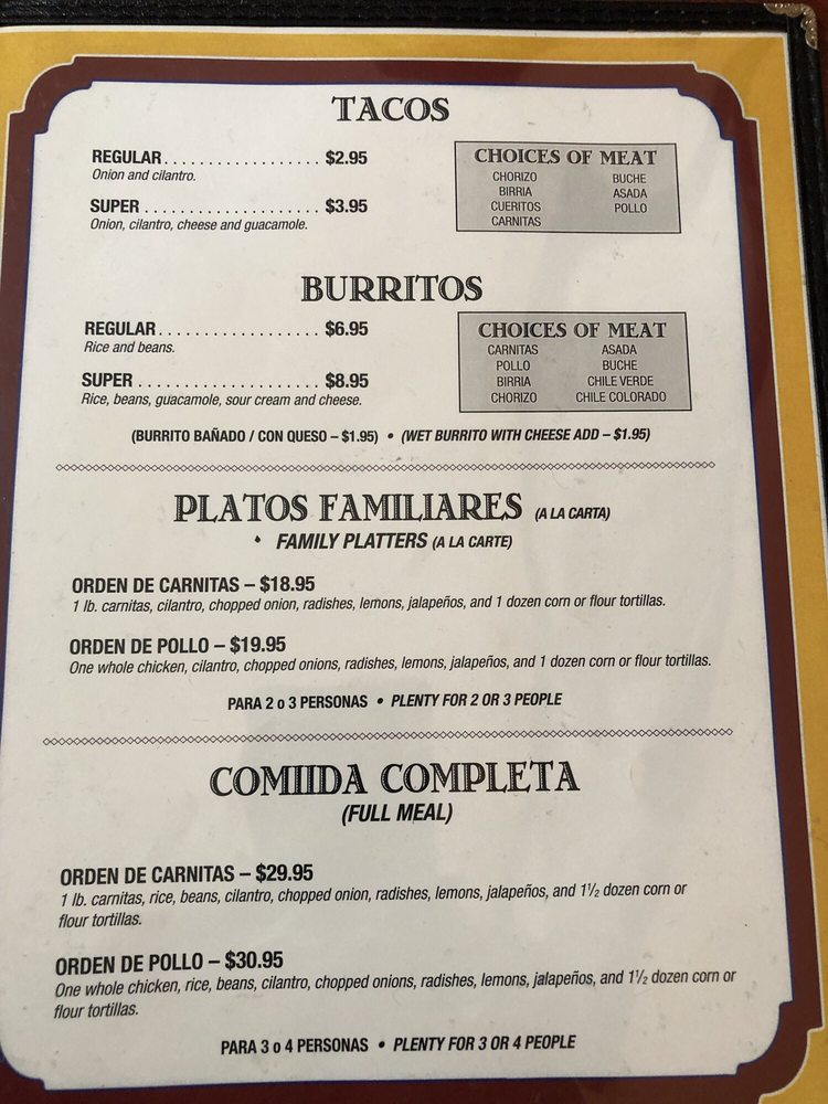 Introducing Carnitas Michoacan, a Mexican restaurant in Gilroy, CA, offering a variety of delicious dishes. With a menu that includes options like the super chicken burrito and premium Carnitas, customers rave about the flavorful meats and generous portions. The Especial de Lulu Chips and the Orden de Carnitas Plato Familiares are fan favorites, showcasing the quality and taste that Carnitas Michoacan is known for. Whether you're dining in or taking out, the friendly service and cozy atmosphere make every visit enjoyable. Don't miss out on the handmade tortillas, salsas, and Guacamole, which add an extra level of authenticity to the dining experience. If you're in the mood for a satisfying meal with bold flavors, Carnitas Michoacan is the place to go. Visit them today and indulge in the best carnitas in town!